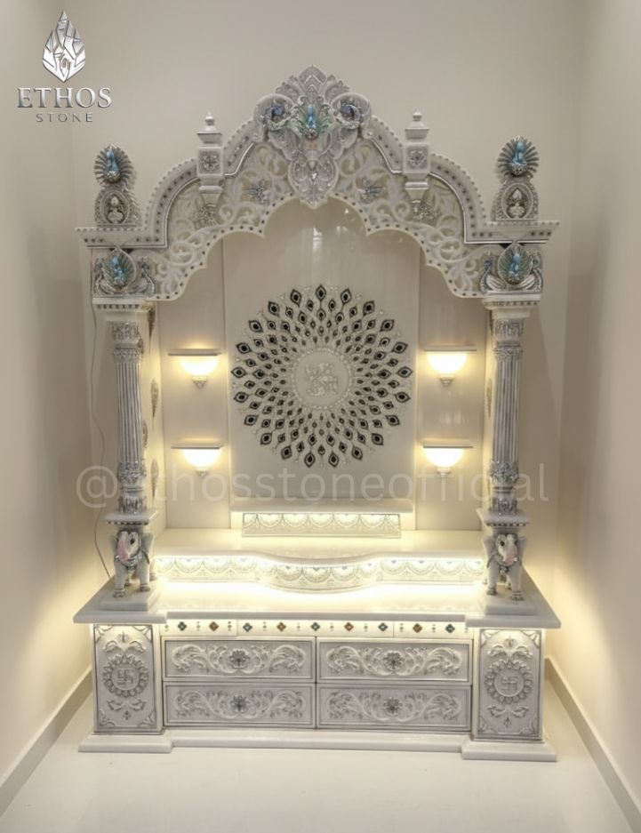 Ethos Stone is a Jaipur-based premium marble stone dealer and custom pooja mandir manufacturer, known for blending natural stone purity with timeless craftsmanship.